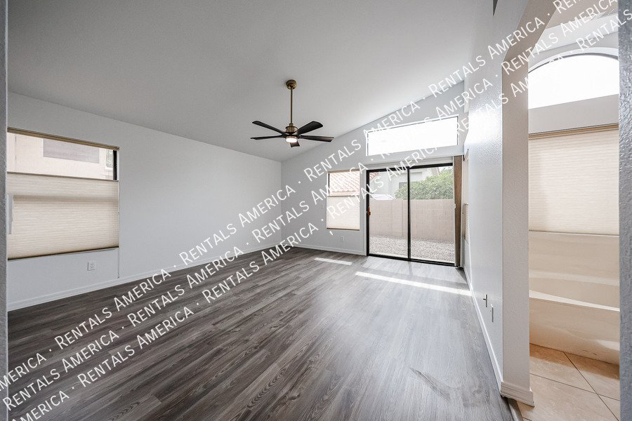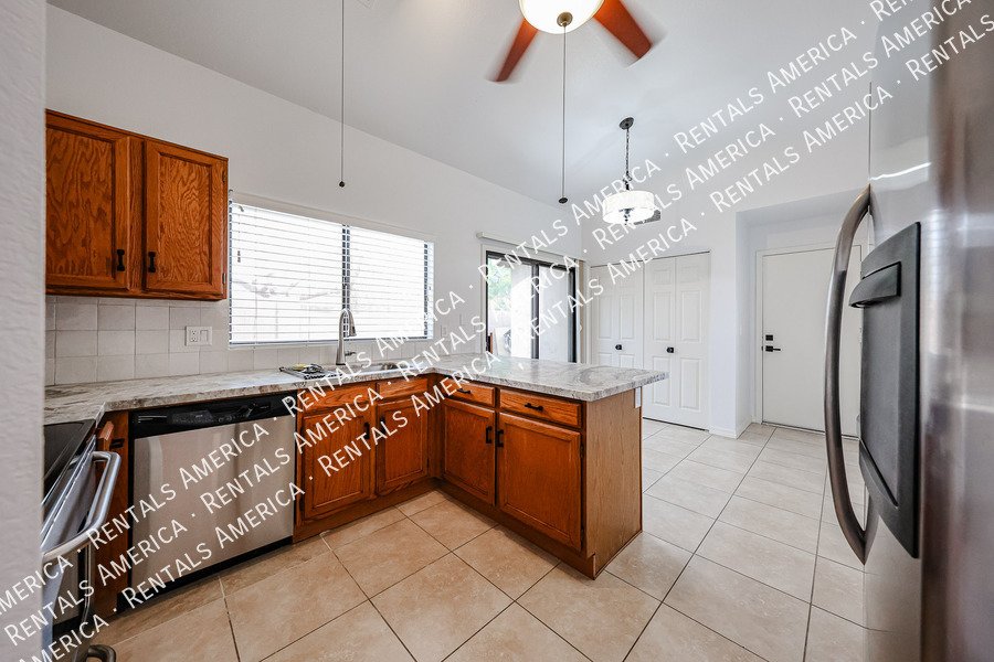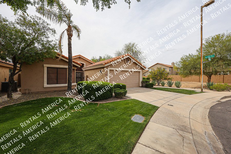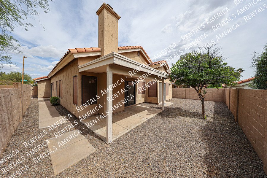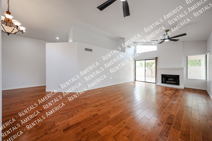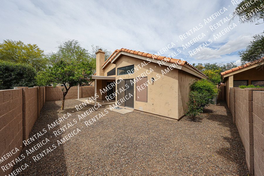 Beautifully updated Scottsdale home available! Single story, 3-bedroom, 2-bath, located in Sweetwater Ranch Manor. U-shaped kitchen features, new granite leather counters tops, counter height breakfast bar, perfect for bistro sized table. Vaulted ceilings in living room with cozy fireplace. Interior freshly painted. Split bedroom layout with new, LPV flooring in rooms. Primary room, ensuite, dual sinks, wardrobe room, and private slider door to low maintenance backyard. Covered patio wraps around with walkway to side yard. House is nicely situated on curve without, a close neighbor on the West side. Front yard landscaping included in rent. Small/medium dogs considered. Don't miss out on this desirable home! Tour and apply today!