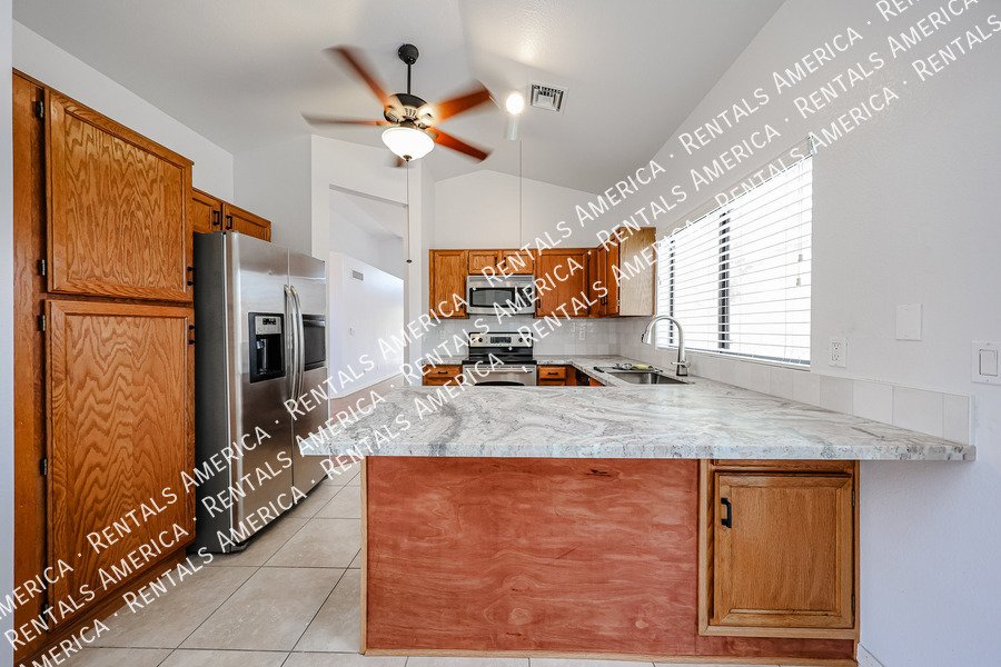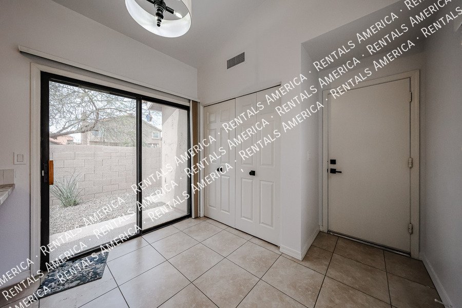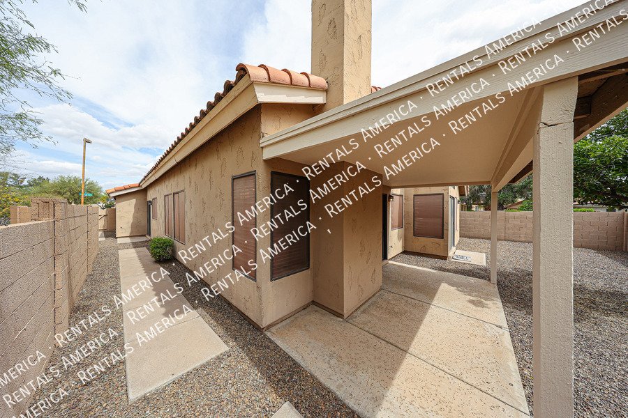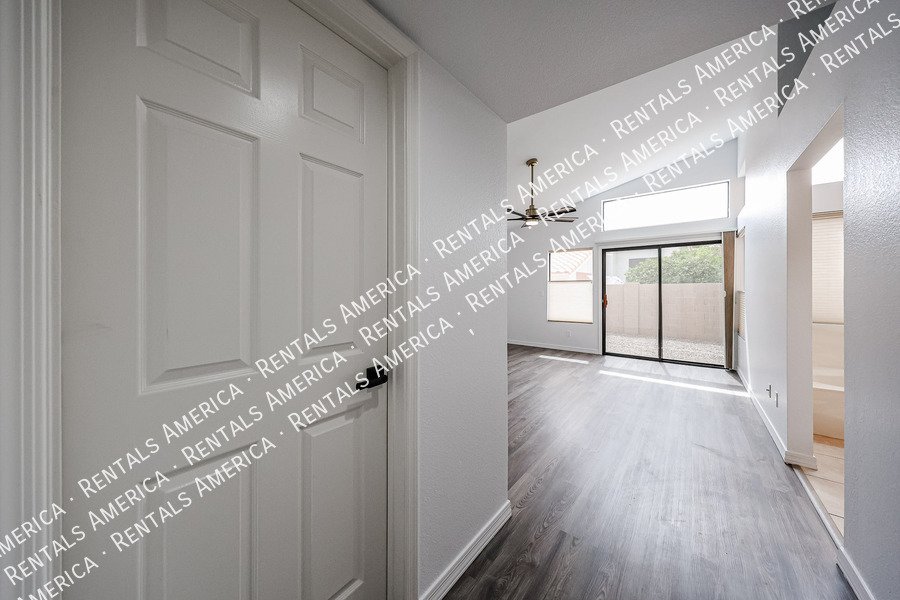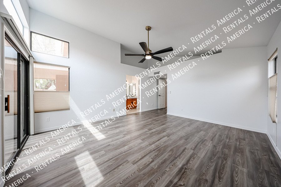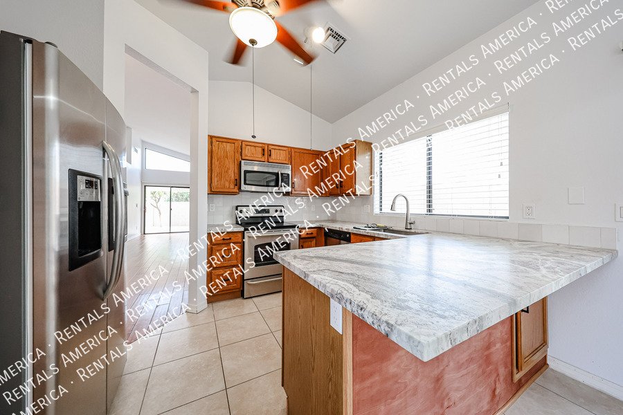 Beautifully updated Scottsdale home available! Single story, 3-bedroom, 2-bath, located in Sweetwater Ranch Manor. U-shaped kitchen features, new granite leather counters tops, counter height breakfast bar, perfect for bistro sized table. Vaulted ceilings in living room with cozy fireplace. Interior freshly painted. Split bedroom layout with new, LPV flooring in rooms. Primary room, ensuite, dual sinks, wardrobe room, and private slider door to low maintenance backyard. Covered patio wraps around with walkway to side yard. House is nicely situated on curve without, a close neighbor on the West side. Front yard landscaping included in rent. Small/medium dogs considered. Don't miss out on this desirable home! Tour and apply today!